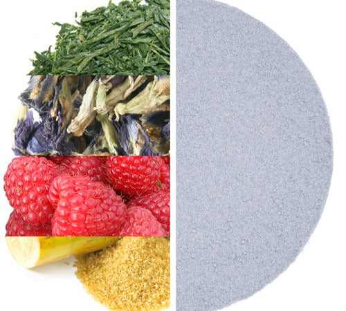 Cane sugar, Butterfly blue pea flower, Green tea, Raspberry, Natural + artificial flavors.